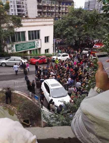 “廣安頭條”發(fā)布的圖片中顯示,現(xiàn)場有大量群眾聚集在大樓下圍觀,警察和消防車已經(jīng)達(dá)到現(xiàn)場維持秩序,等待救援。其中一張圖片中,一名男性躺在布滿玻璃、碎石和破爛窗欞的地上,身上的衣物已經(jīng)破碎,在該男子頭部、左肩和左腿上都有明顯血跡。停靠在男子身旁的白色轎車車窗全部碎裂。